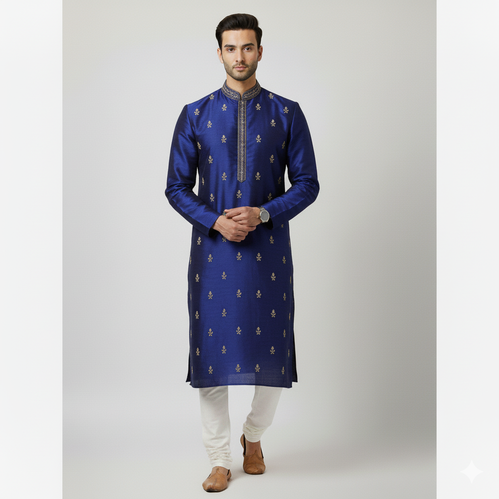 Premium silk with striking royal embroidery. An elegant choice for special occasions.